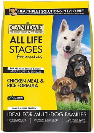 This cutting-edge canine chow was specially formulated by veterinarians to ensure that all breeds of dogs can easily tolerate. The Canidae Chicken and Rice formula is king when it comes to households that use multi-pet canned dog foods.